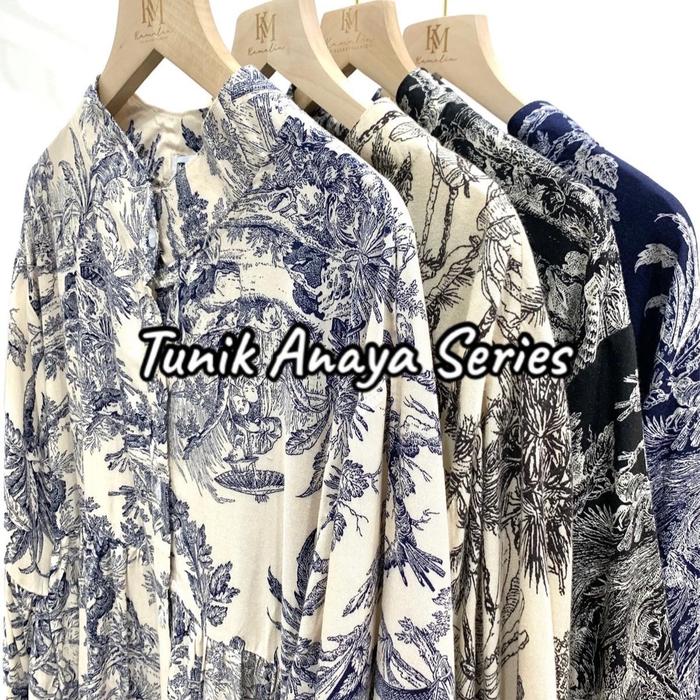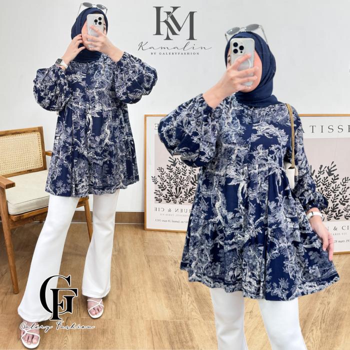 Tunik Jumbo Rempel Ld 130 Terbaru Dan Kekinian Atasan Wanita Rayon Vintage Busui Motif Anaya By Kamalin - Anaya Navy, L