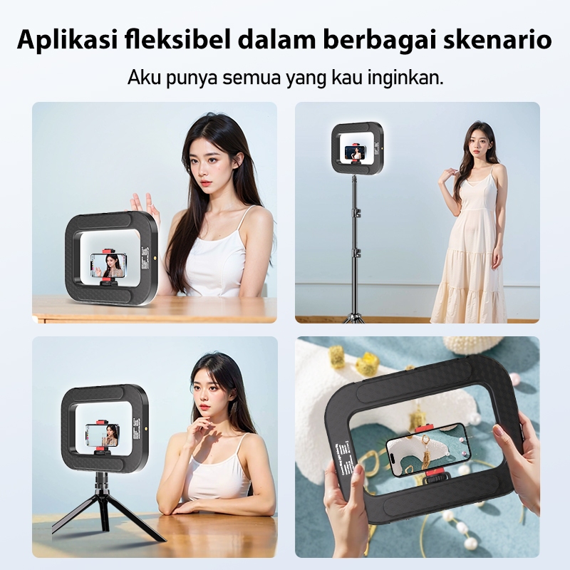 Gmetal 14Inch Ringlight Lampu Video Light Fotografi Lampu Pengisi Lighting Konten 3 Warna Adjustable Brightness