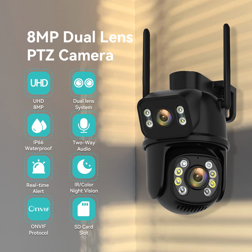 Hamrol 6K 12Mp Kamera Wifi Ptz Three Lens Waterproof 8Mp Dual Lens Auto Tracking Outdoor Cctv Camera