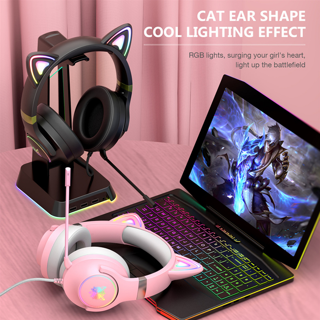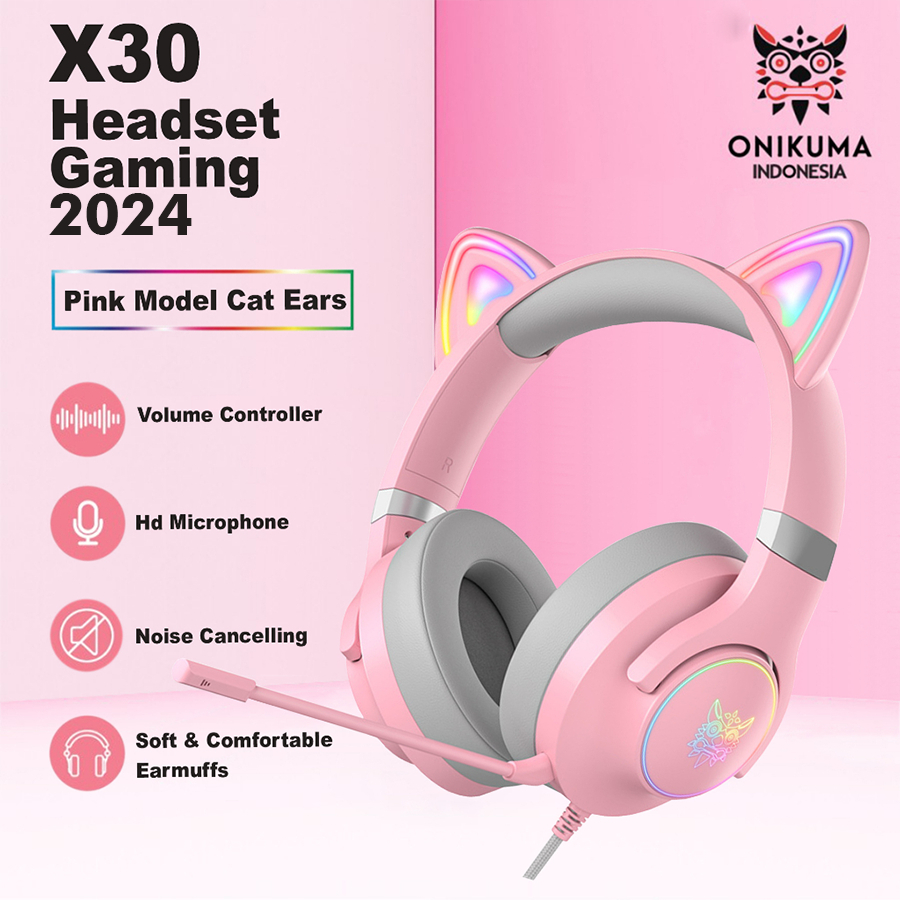 ONIKUMA X30 Headphone Gaming Wanita NEW FREE PRODUK MINIMAL PEMBELIAN 300 RIBU} - Pink RGB Headset Gaming Model Cat Ear Original
