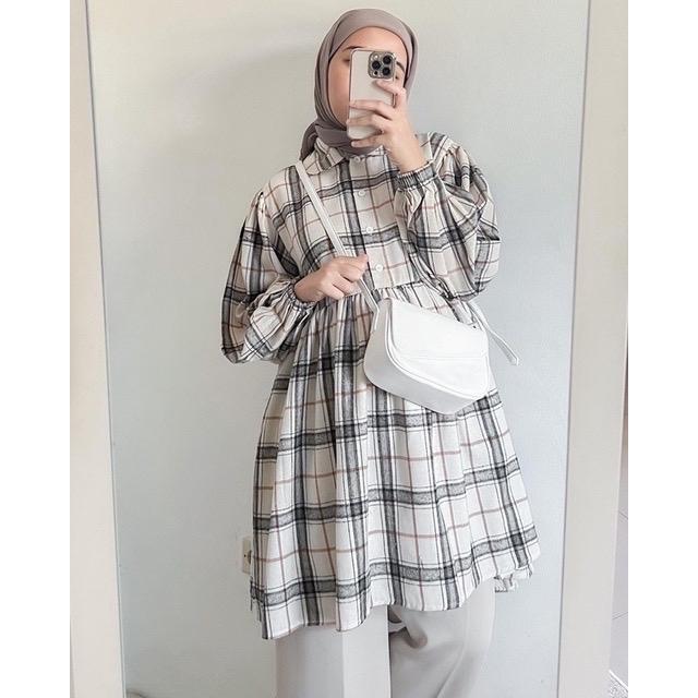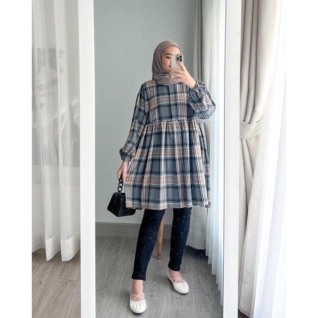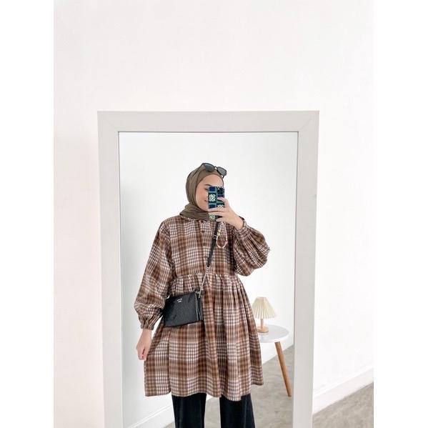 Rumyel Tunik Flanel Premium/Atasan Tunik Wanita Kekinian / Tunik Flanel Wanita Muslim - Coper, Allsize