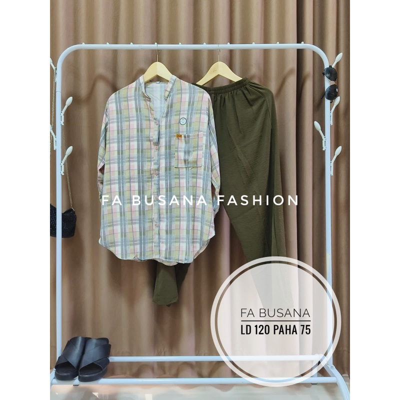 Setelan Cringkel One Set Wanita Terbaru Kekinian Stelan Baju Dan Celana Kringkel Airflow Polos Kombinasi Kotak