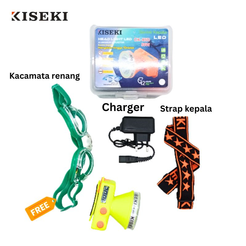 Kiseki Senter Kepala Selam CK-X5D 50W | Senter Selam Headlamp Super Bright Cahaya Putih