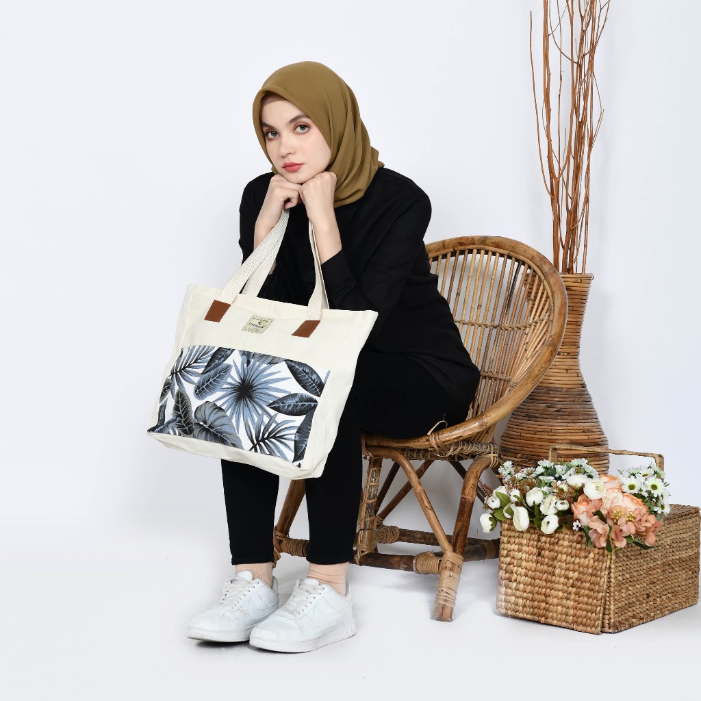 Tas Tote Bag Kuliah Wanita Aesthetic Landscape resleting bahan kanvas polos dan Canvas motif bisa custom untuk nudie bag seminar gift dan souvenir perempuan