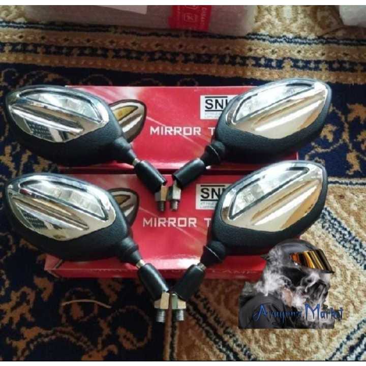 Spion Bubut 2 jari dan 3 Jari Spion Bubut Tangkai pendek Spion led bubut original spion style plat KT Spion Motor Vario 125 150 160 Beat Pcx Adv ()