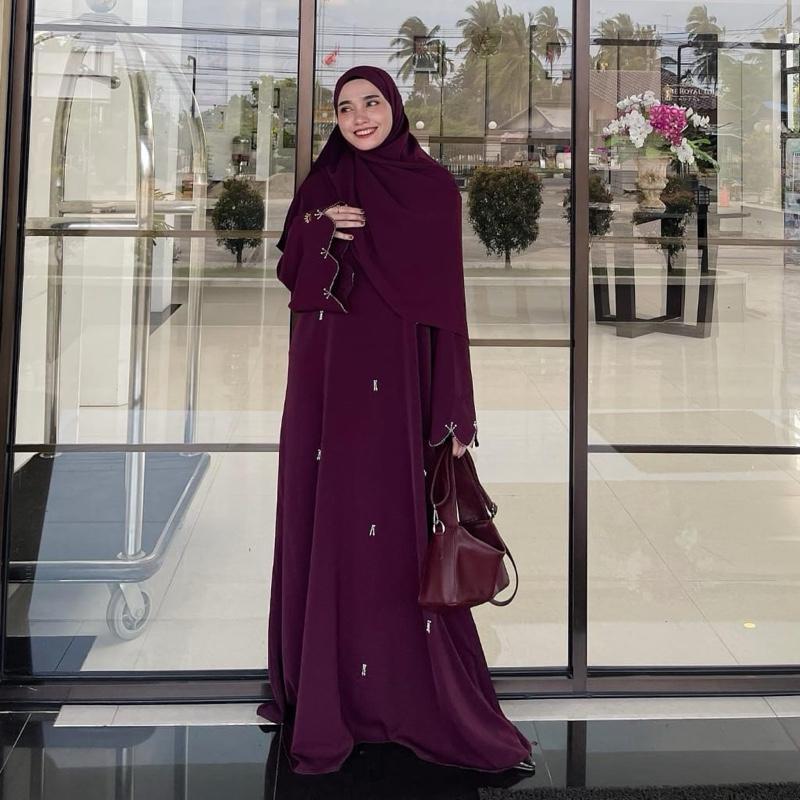 abaya Yasmen dress bahan marbela anti uv aplikasi payet mutiara abaya umroh anti uv simple mewah elegant