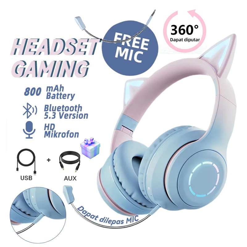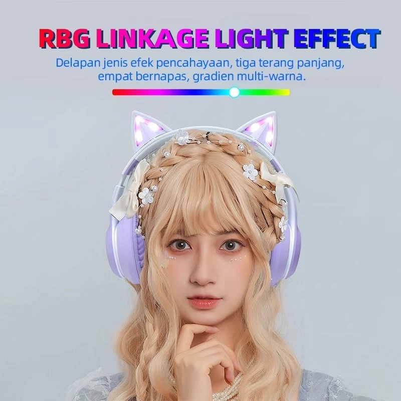 Headphone Nirkabel Dengan Bluetooth 5.3 Headphone Gaming Telinga Kucing Headphone Olahraga Headphone Berkabel Pencahayaa