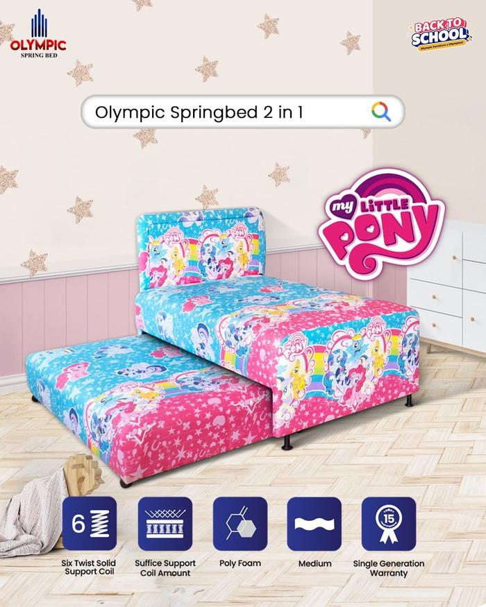 Spring Bed Olympic 2 In 1 Plustop Atau Kasur Spring Bed Sorong Free 2 Bantal Olympic - Twin Euro White, 100X200