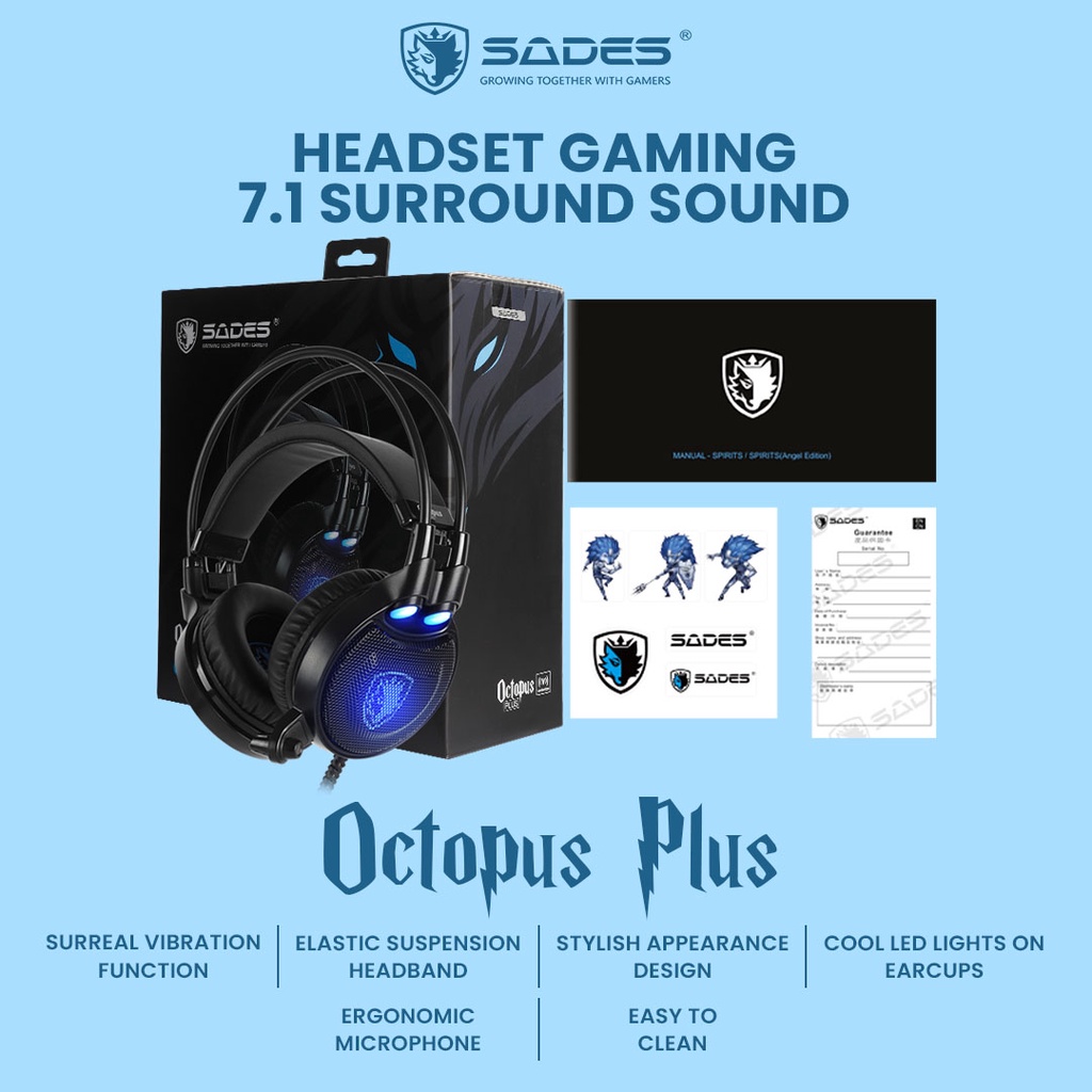 Headset Gaming Sades Octopus Plus 7.1 Surround Sound With Vibration