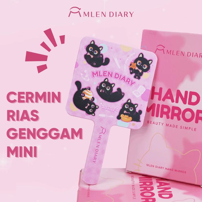 MLEN DIARY Cermin Rias Kucing MiniCermin Ukuran Perjalanan Mini PolaKucing Lucu untuk Perjalanan - held makeup mirror