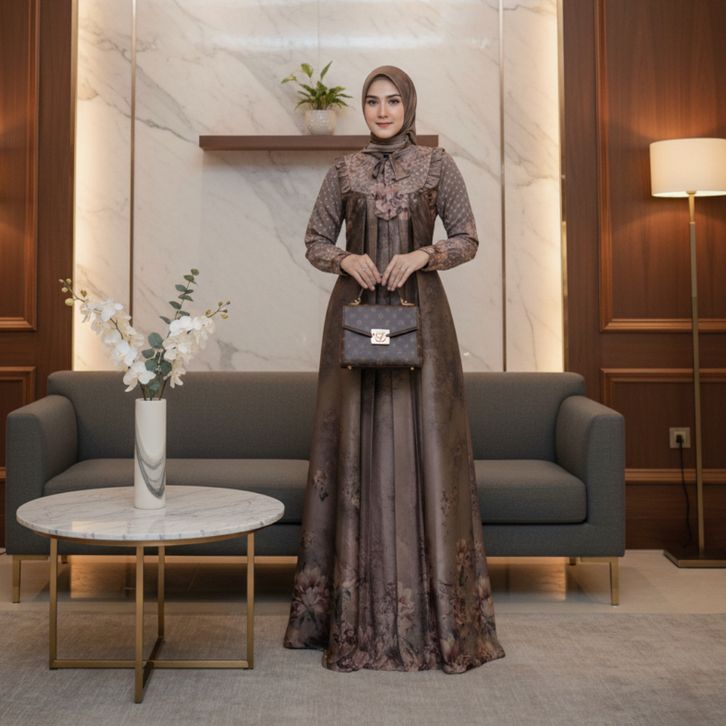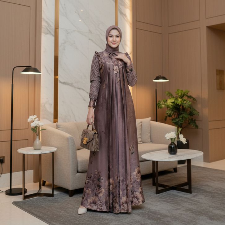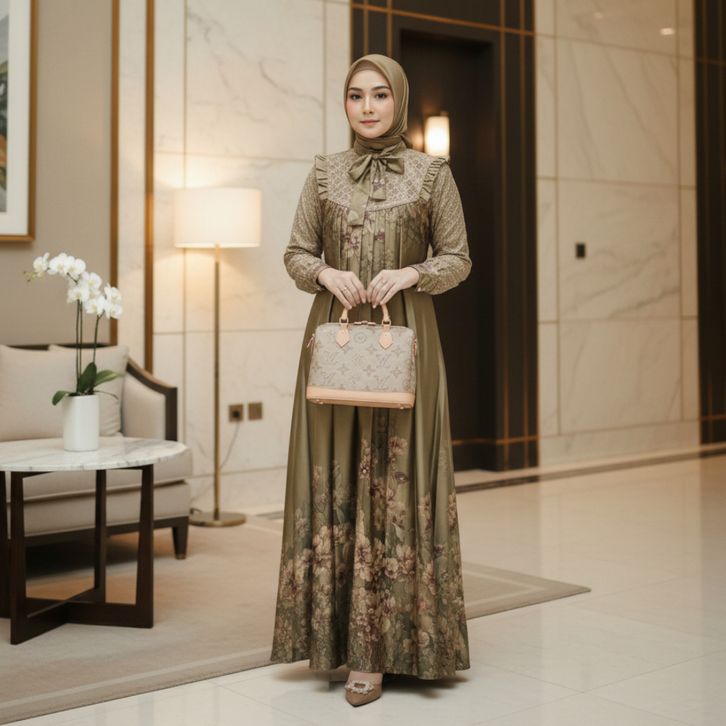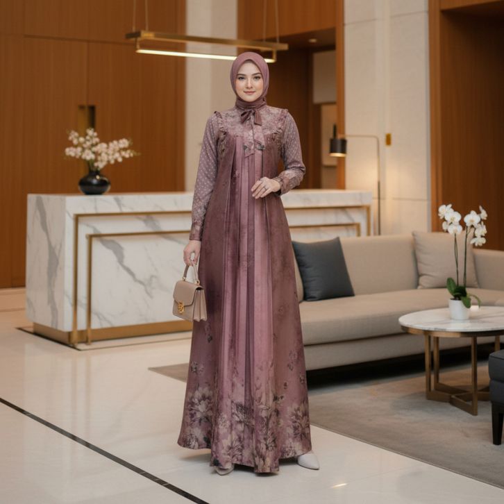 Gamis Andini Set Hijab Dress Muslim Wanita Motif Cantik Elegan Fashion Ootd Terbaru