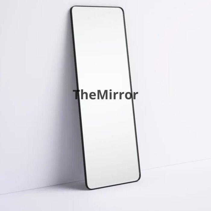 Kaca Cermin Gantung Sudut Rounded Dengan List Karet Hitam Ukuran 150x385 CM - 150x38.5 Rounded List Hitam