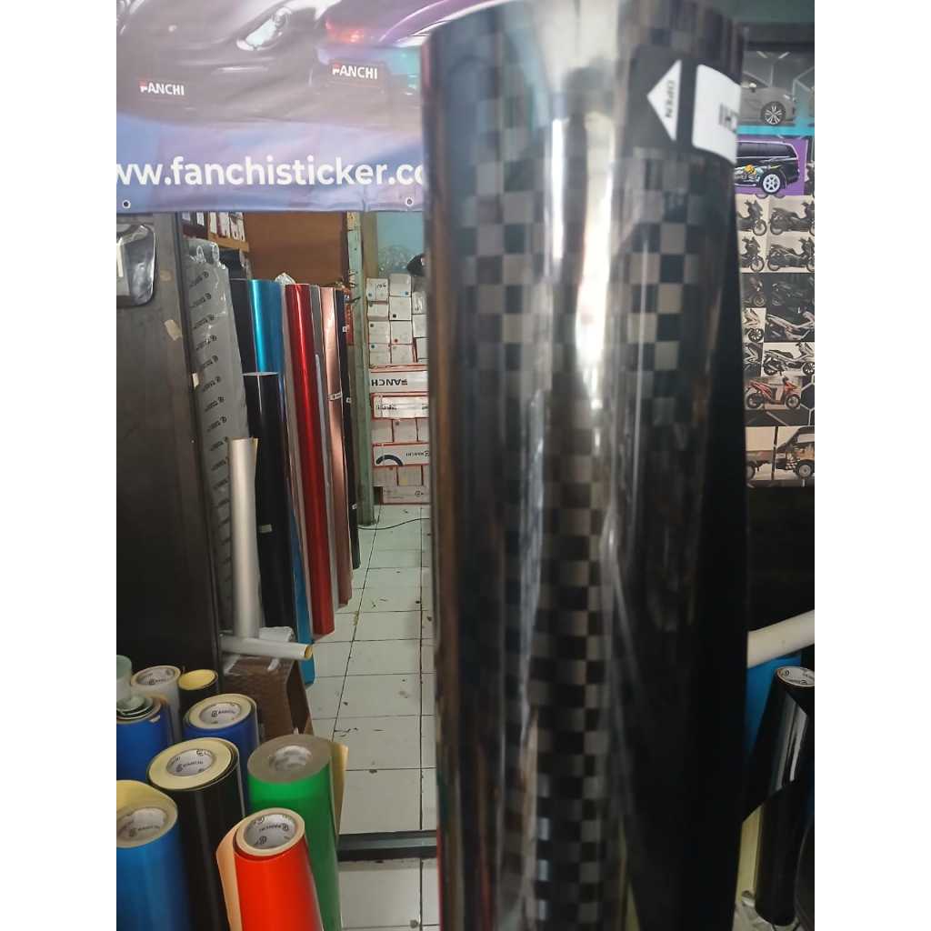 152CM Sticker MAXDECAL Series 7600 SGCST 8D Super Gloss Carbon Spread Tow Kotak Kotak Catur Black 10mm 8D lebar 152CM permeter