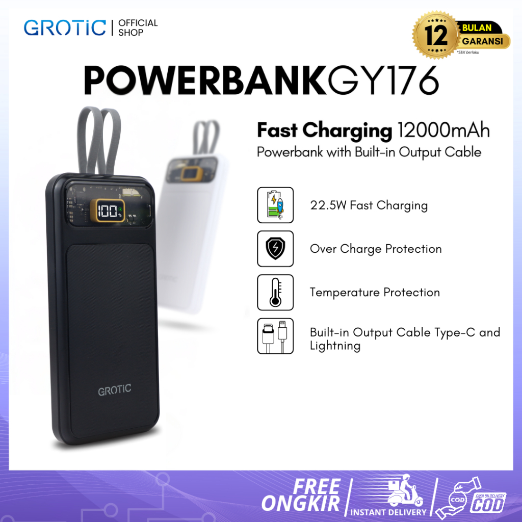 Grotic Powerbank Fast Charging 12000Mah With Dual Port Type C And Lightning Gy176
