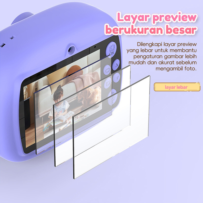 【Kamera+print 2in1】MISENI 4800W HD Kamera Anak Digital Mini Dual Camera Instant Print Layar FHD 2.4 Inch IPS/ Resolusi 48Megapixel Mainan Anak Perekam Video