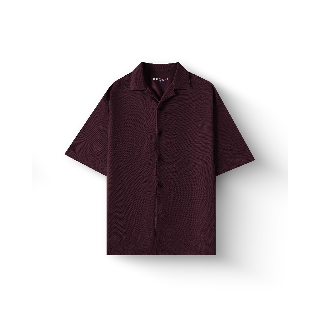 Broodis Kemeja Bowling Pria BONDEE Series Deep Burgundy Lengan Pendek Casual Relax Fit Anti Kusut