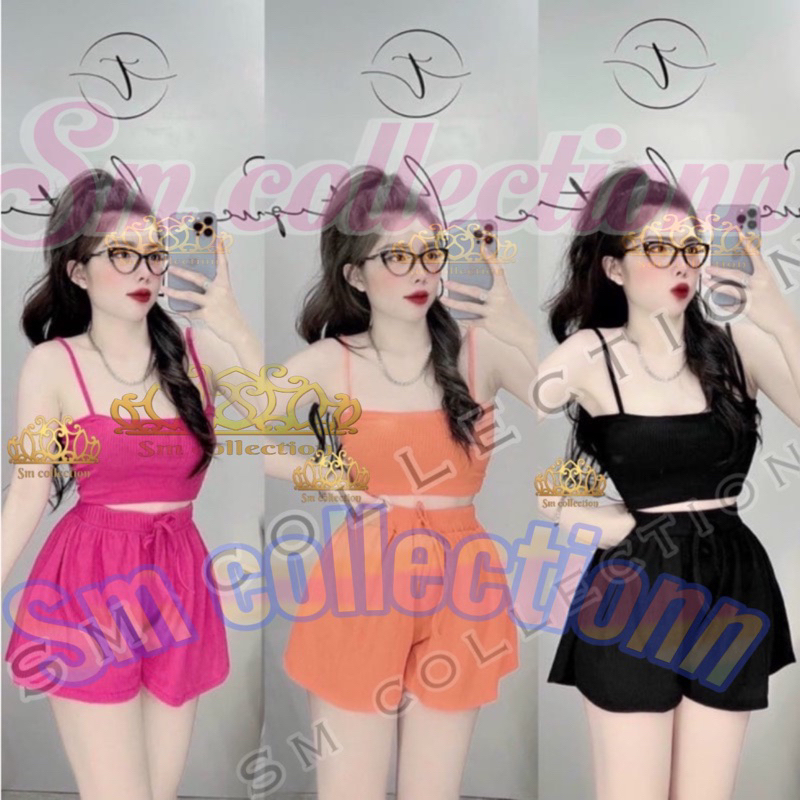 SM COLLECTIONN Setelan ONE SET WANITA KNIT RIB PREMIUM/SETELAN WANITA KNIT RIB/SETELAN CELANA PENDEK WANITA Murah Gratis