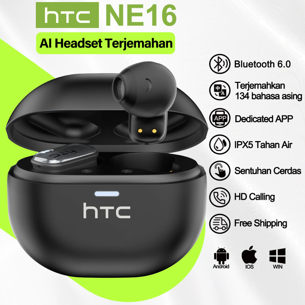 Htc Ne16 True Wireless Bluetooth Earphones V6.0 Headset Terjemahan Ai In-Ear Earphone Mini Earbuds Headset Olahraga Earp