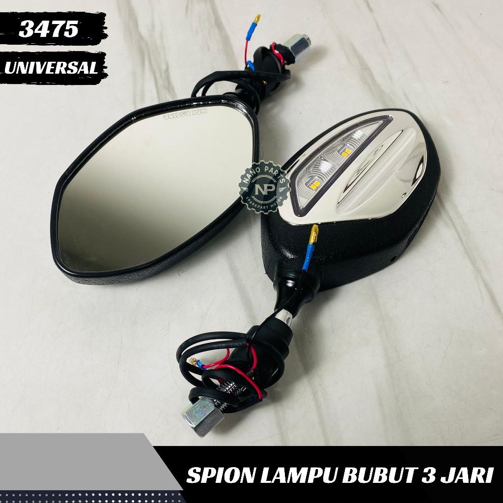 Spion Lampu Bubut 3 Jari Tangkai Pendek Sen Running Sein Chrome Silver Model Beat Bisa H Y Universal