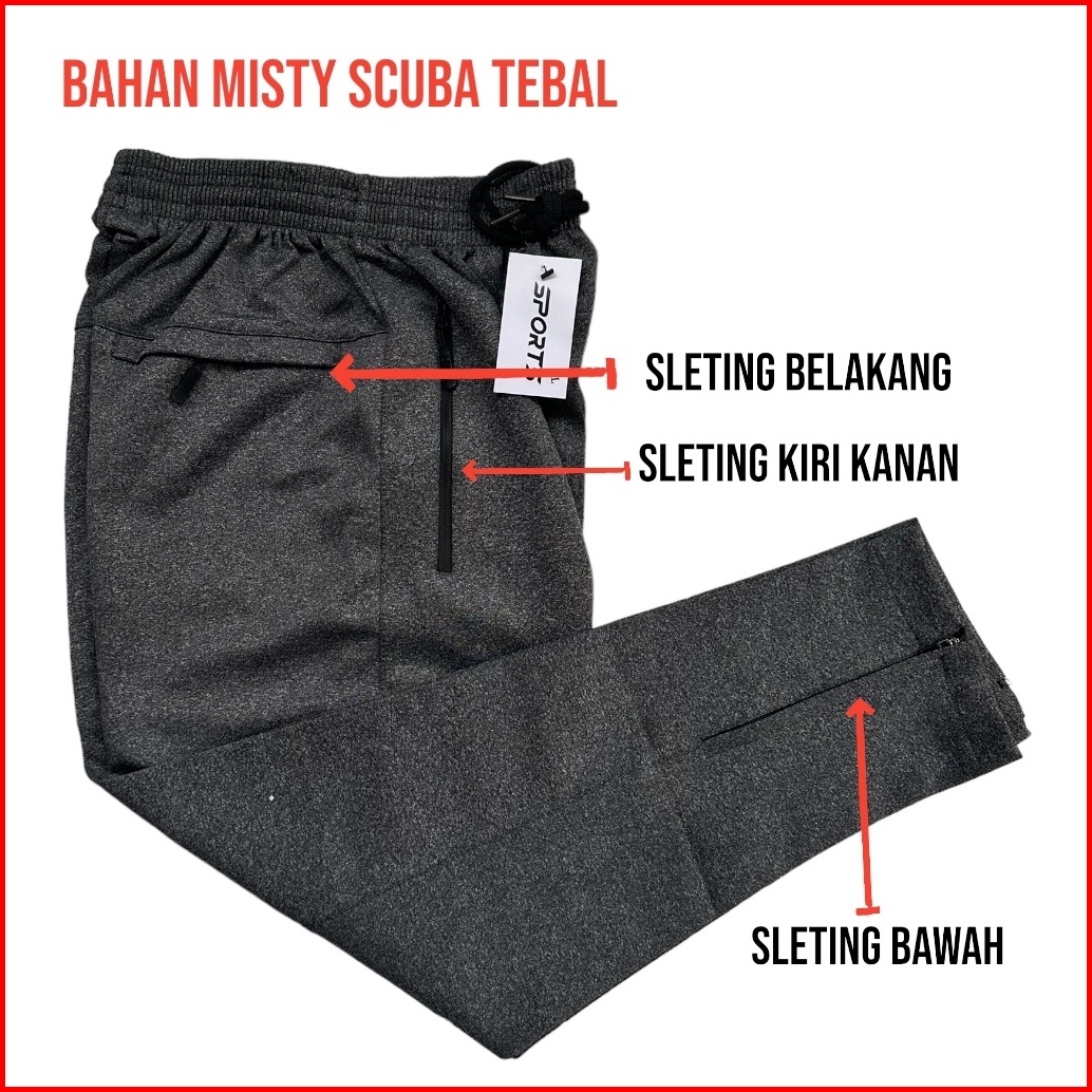 Celana Training Scuba Tebal Saku Resleting Kiri Kanan Belakang
