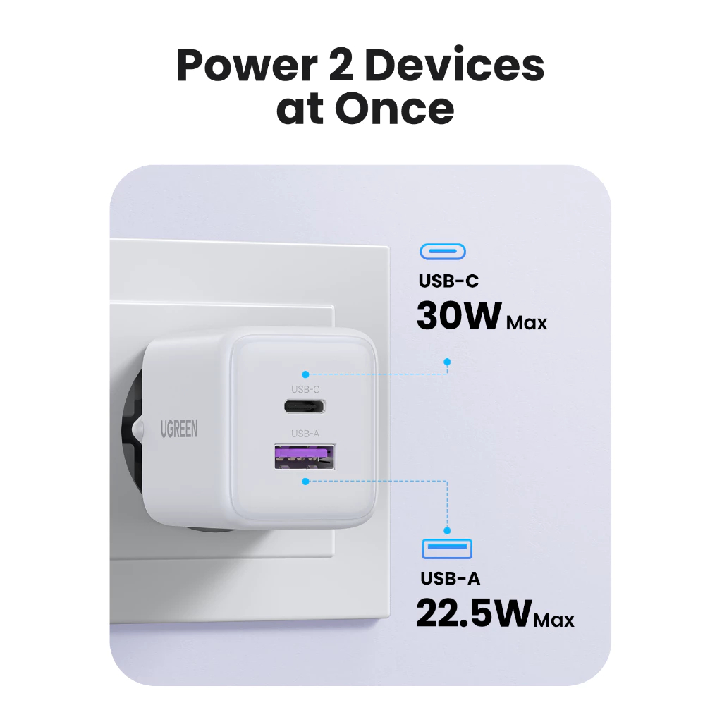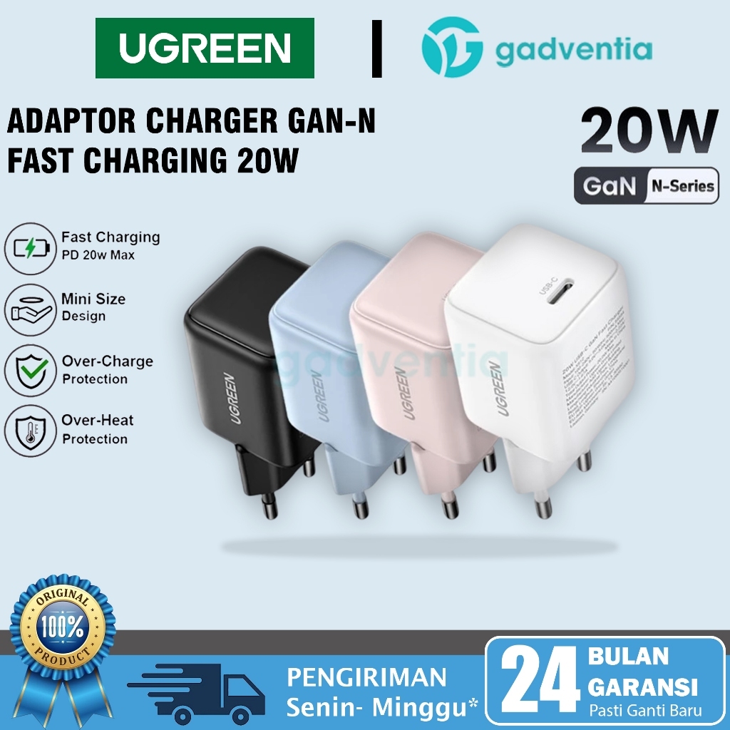 UGREEN Kepala Charger Mini GaN N PD Type C Fast Charging 20W 30W 45W Adapter For iPhone Android