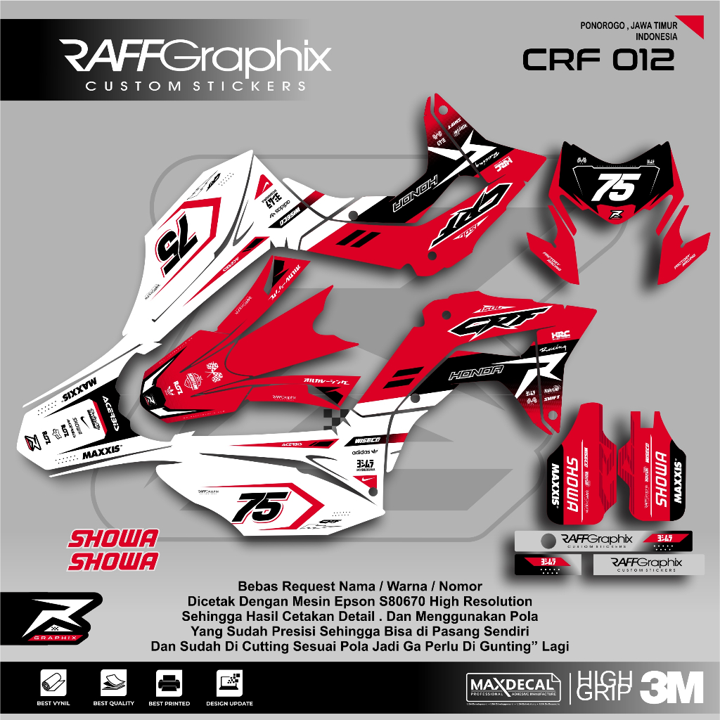 DECAL CRF MERAH PUTIH/STICKER CRF 150 /DECAL CRF SUPERMOTO KEREN