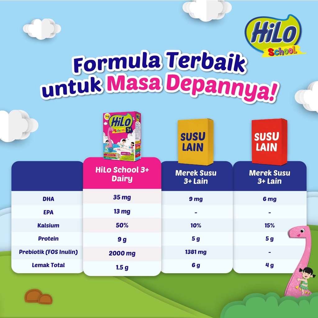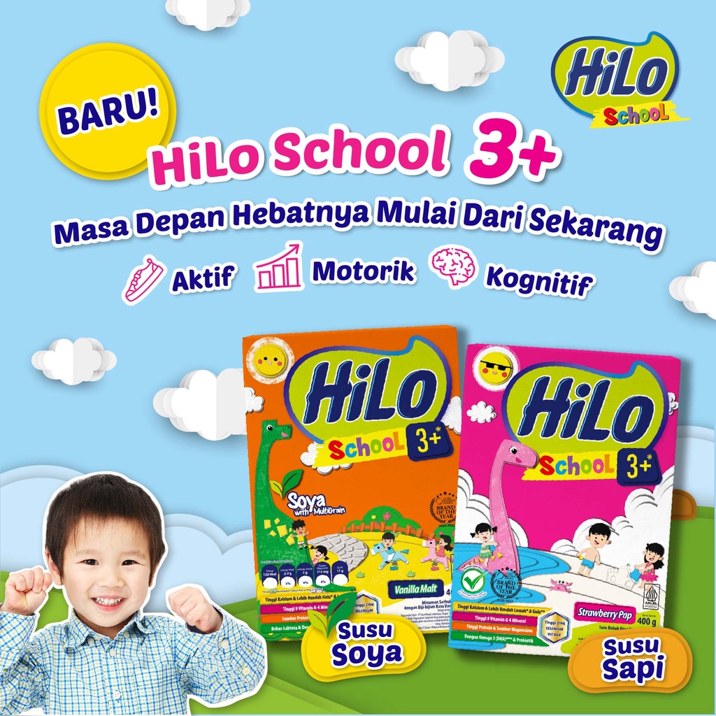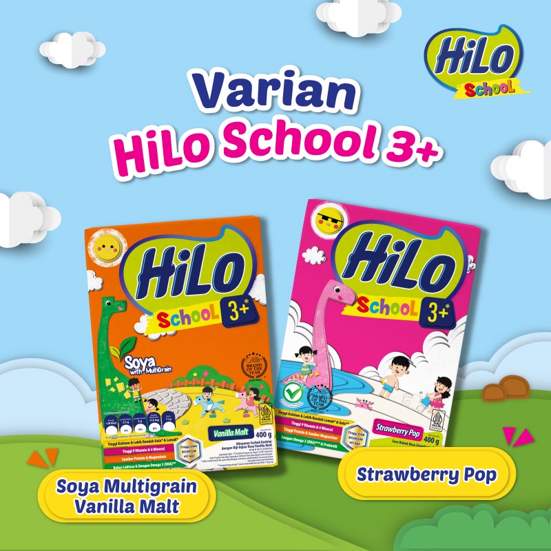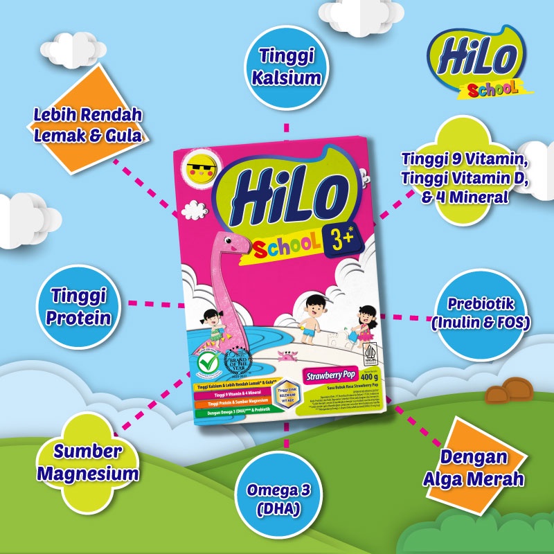 HiLo School 3+ Strawberry Pop 400gr - Susu Pertumbuhan Anak Usia di atas 3 Tahun