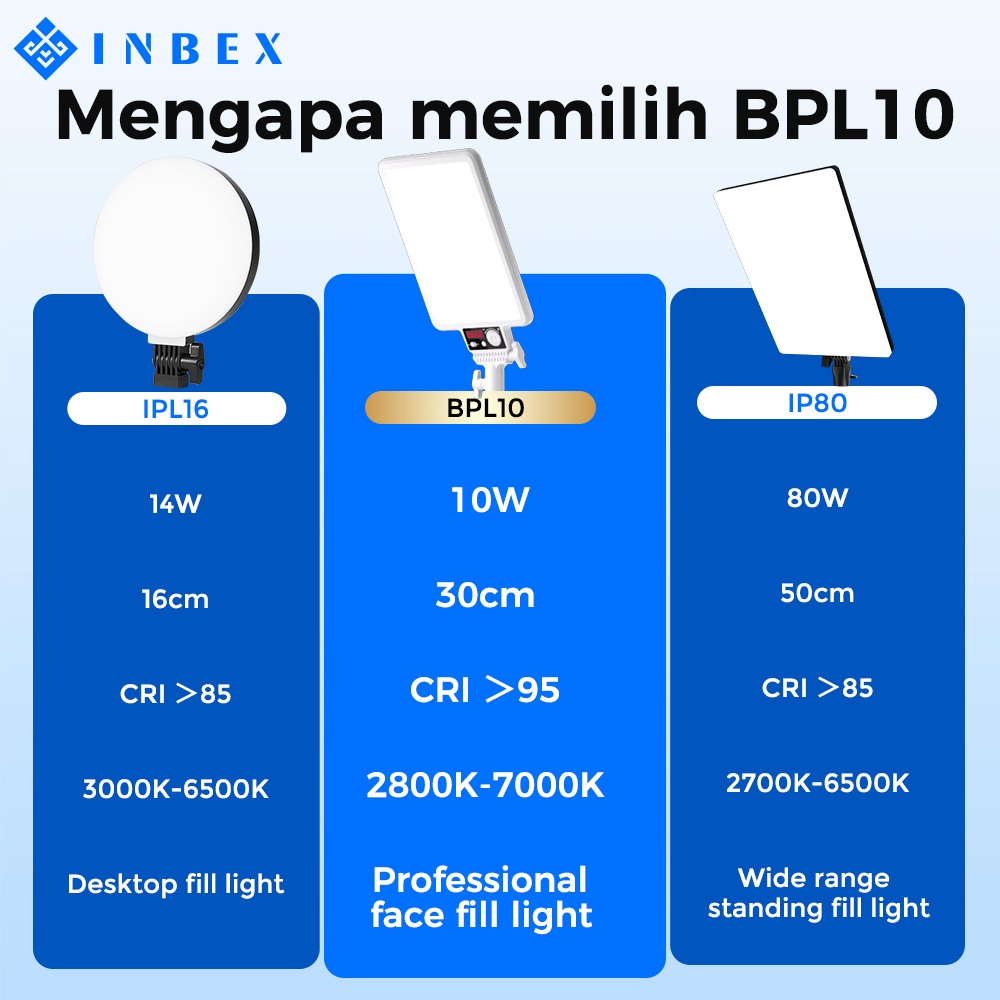 Inbex Bpl10 Lampu Panel 3 Warna Lighting For Make Up Kontent Kreator Ring Light Streaming Langsung/Tata Rias/Video