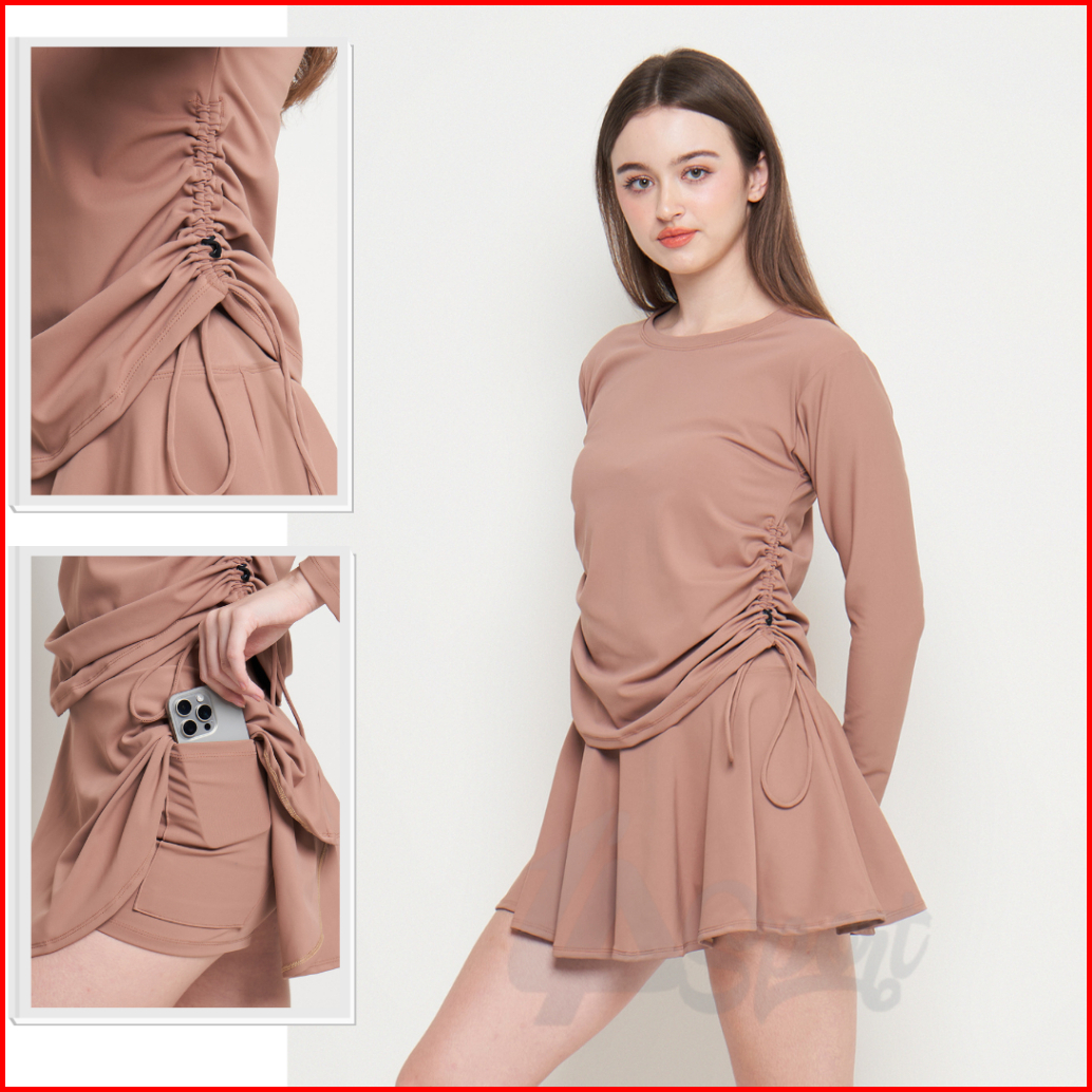 Set Olahraga Atasan Serut Set Zumba Wanita Set Aerobic Wanita