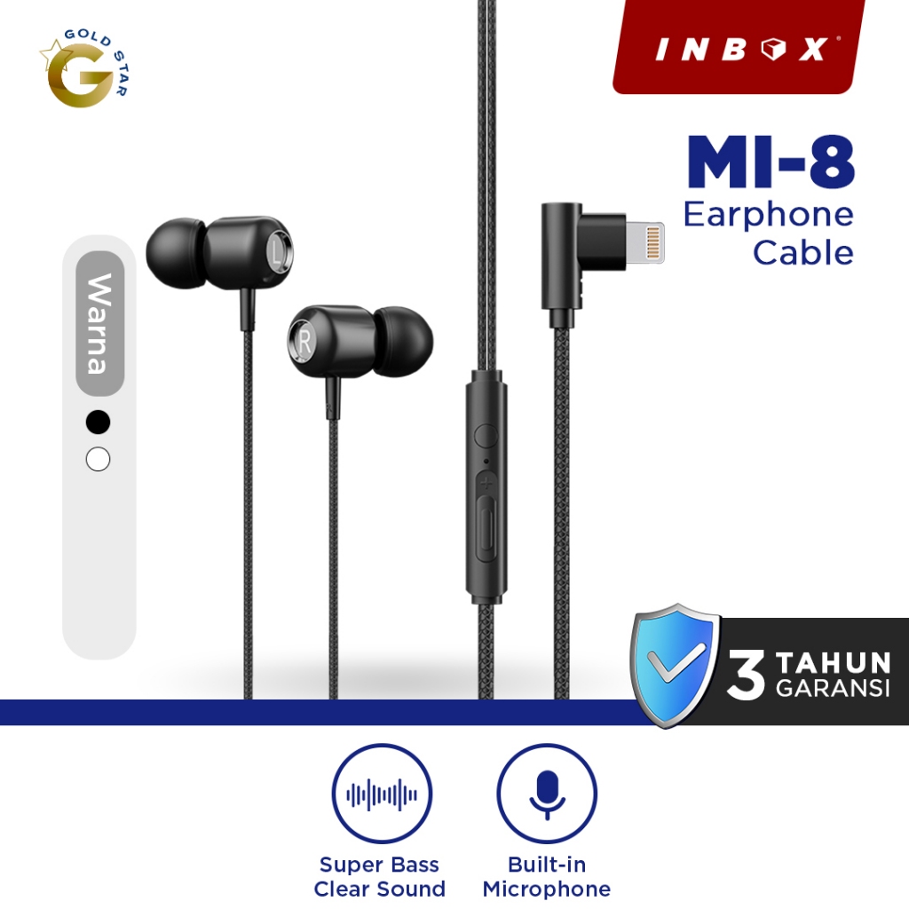 Inbox Mi-8 Earphone Lightning Untuk Iphone Dengan Microphone Super Bass Audio Headset
