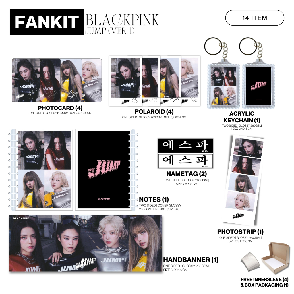 HAMPERS KADO CEWEK FANKIT BLACKPINK JUMP 14 ITEM KPOP UNOFFICIAL BLINK JENNIE JISOO LISA ROSE KADO ULANG TAHUN CEWEK