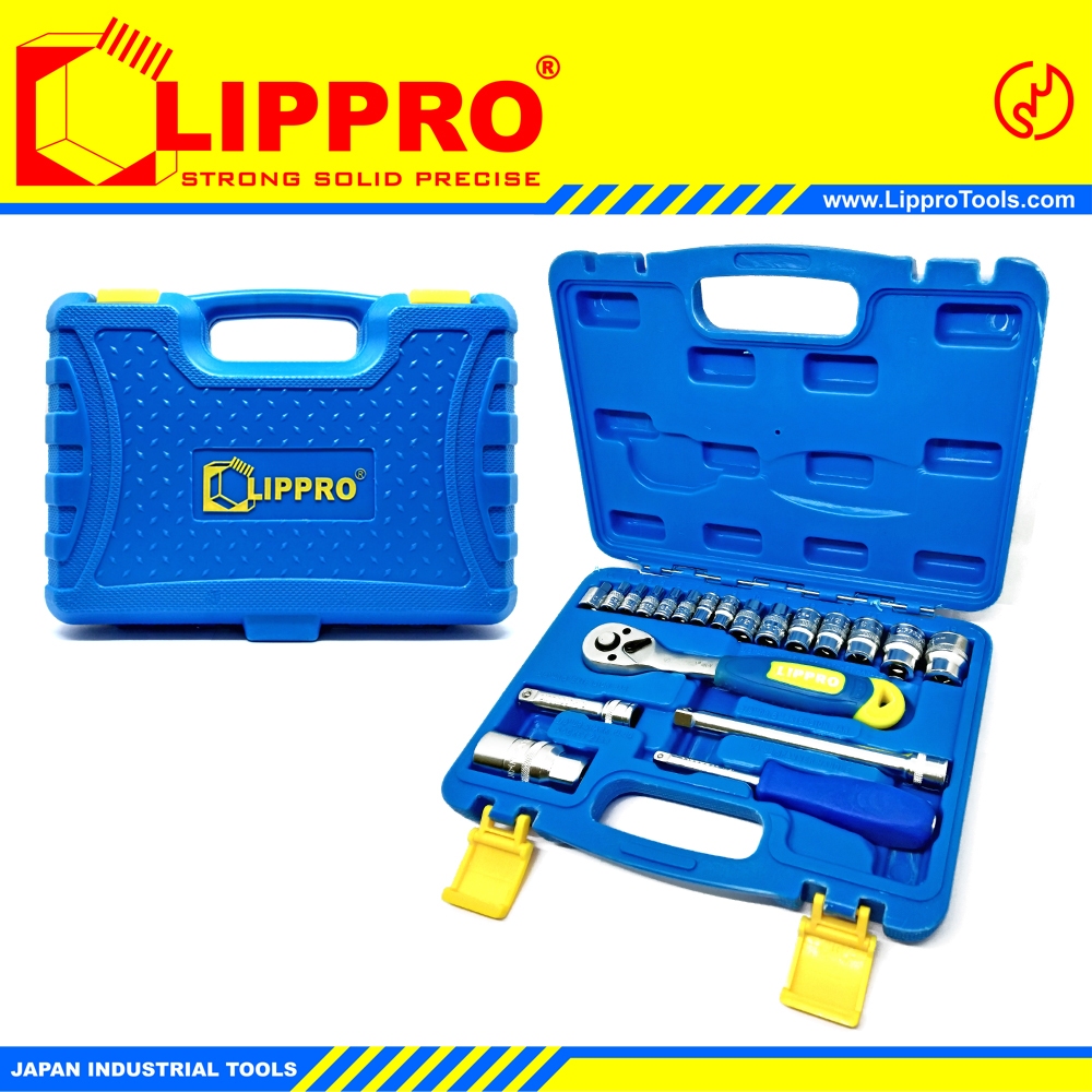 LIPPRO 1180M Kunci Sok Set 6 PT Box Plastik 1/4" - 3/8" Socket Set 21 Pcs