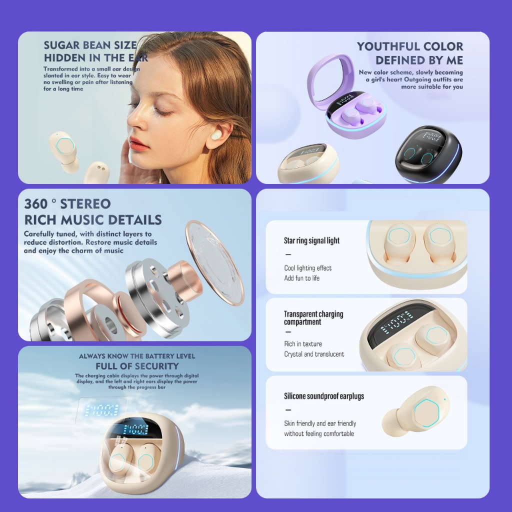 Jovitech Macaron Tws Bluetooth Earphone In-Ear Earbud With Digital Display Gaming Earphone Ultra Hd Audio Mini Earbuds -