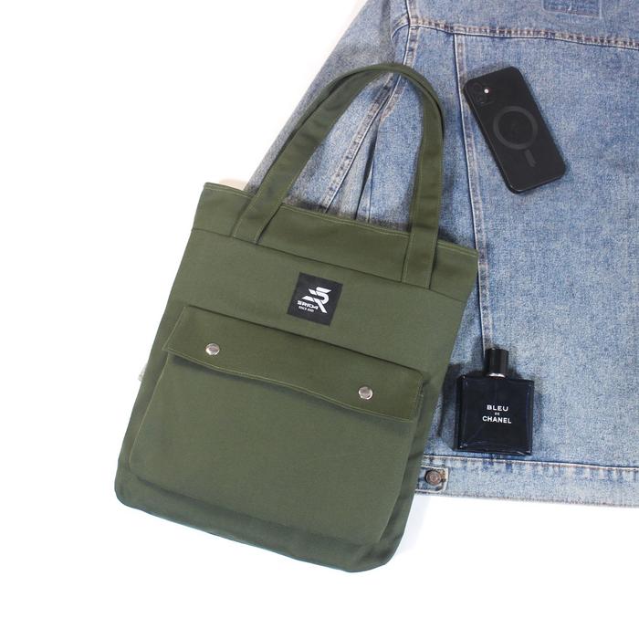 Totebag Saku Doraemon•Tote Bag Water Repelleent•Tas Kuliah Pria Wanita•Tote Bag Pria Wanita - Coklat-Doraemon