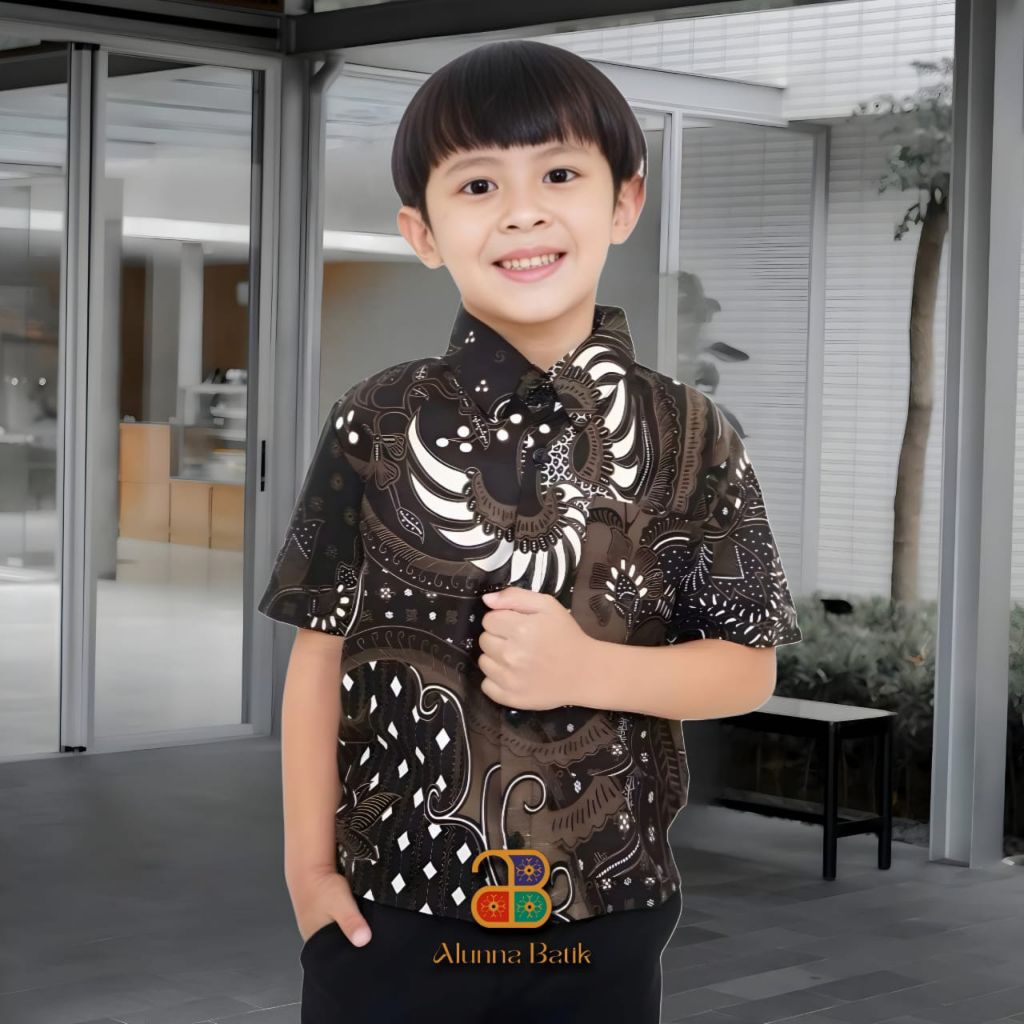 PUSOKO Kemeja Batik Anak Laki Laki Lengan Pendek Kekinian Modern Keren Lucu TK SD SMP M L XL XXL