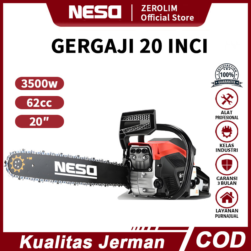 NESO JERMAN Mesin gergaji Mesin Potong Kayu 62CC 20inch Chainsaw 2Tak Untuk Alat Outdoor mesin belah