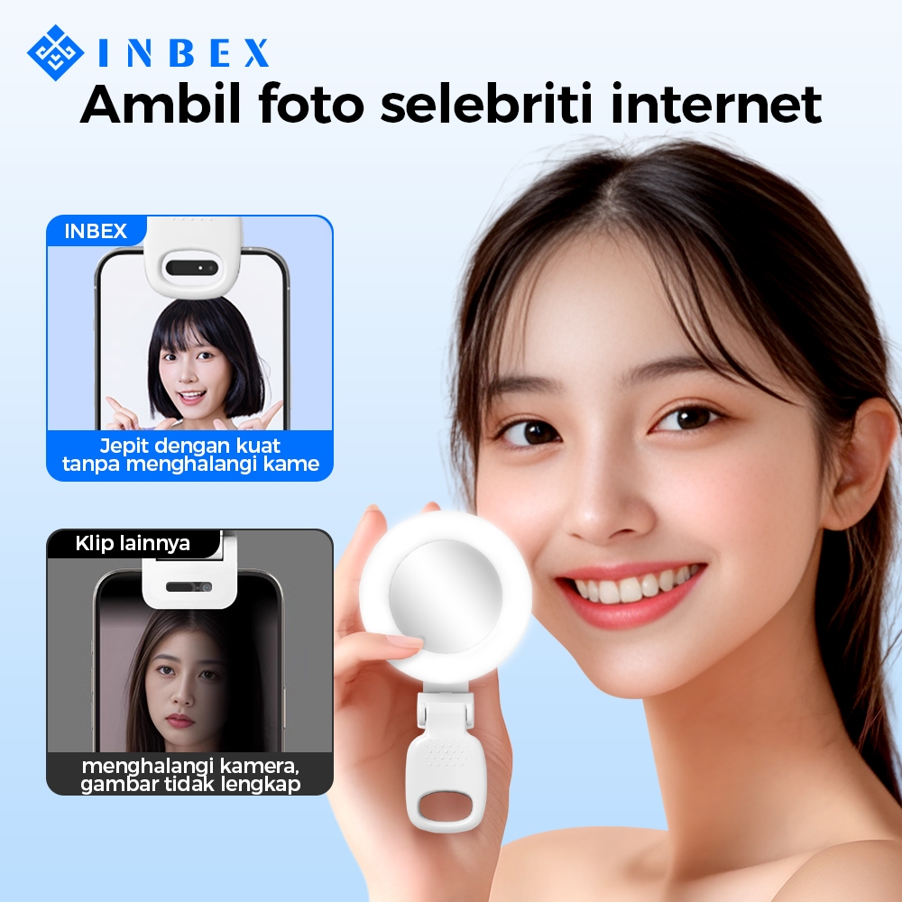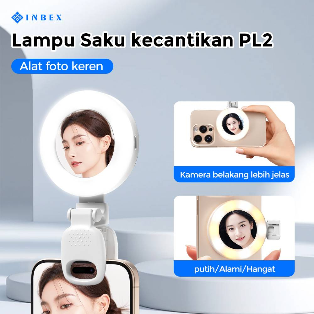 Inbex Pl2 Lighting Konten Ring Lighti Mini Mirror Capit Konten Kreator Portable Lampu Selfie Hp