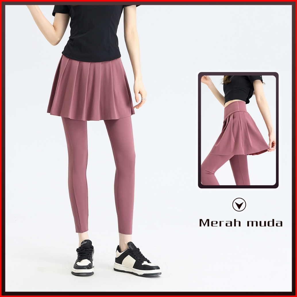 Amanoheartrok Celana Yoga 2 In 1 Hitam Biru Putih Sporty High Waist Legging Gym Jogging Bawah Celana Kulot Rok Lipit Out