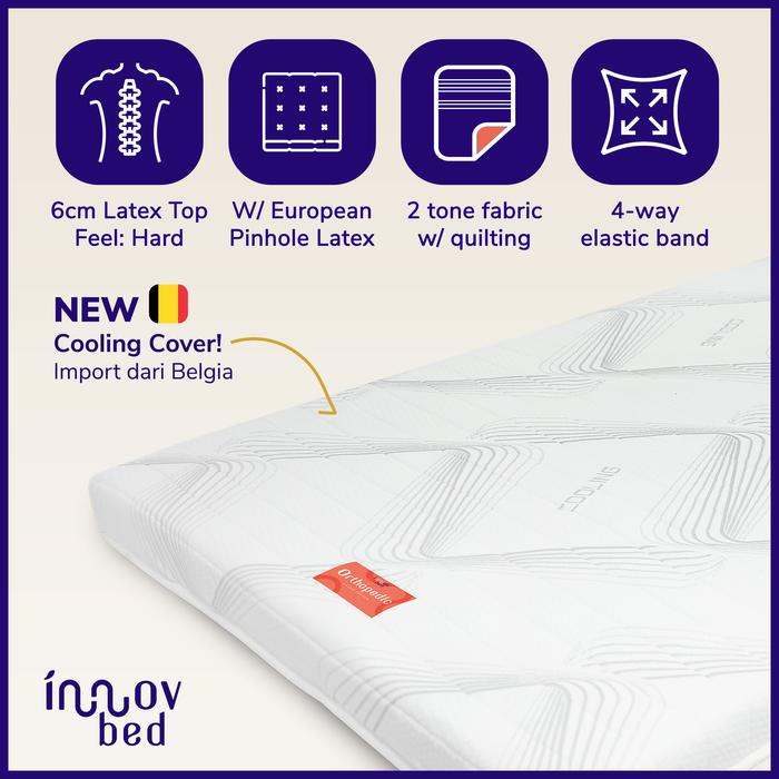 Topper Kasur Innovbed Orthopedic Full Natural Latex - Topper Kesehatan - Cooling Cover - Tebal 8Cm - Hard - 90X200X8 Cm,