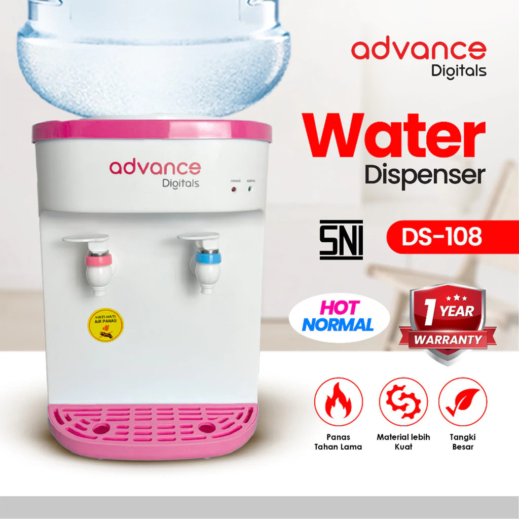 Advance DS-108 Dispenser Galon Atas Dual Mode Panas & Normal 350W Kapasitas 0.6L untuk Rumah & Kantor