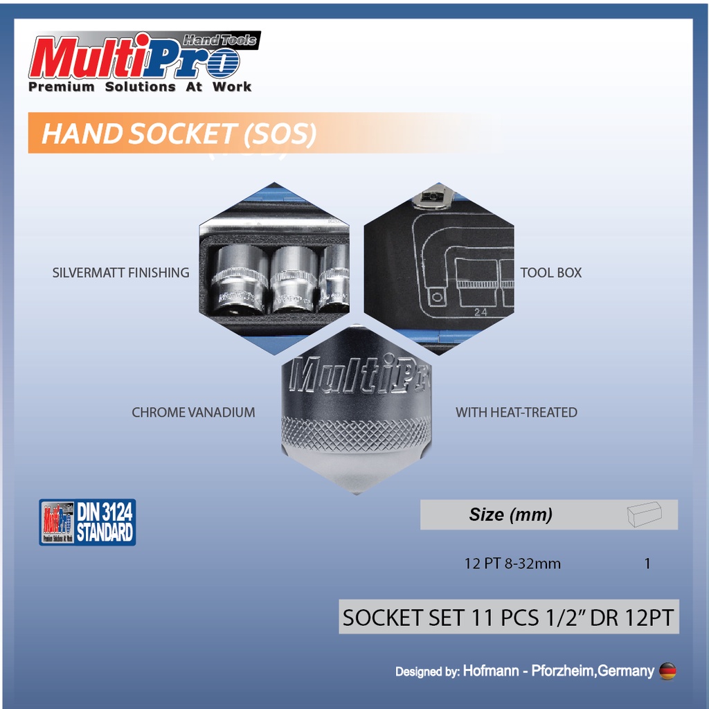 MULTIPRO - KUNCI SOCK SET 11 PCS 1/2" / SOCKET SET 11 PCS 1/2" DR 6PT/12PT - GARANSI RESMI 1 TAHUN