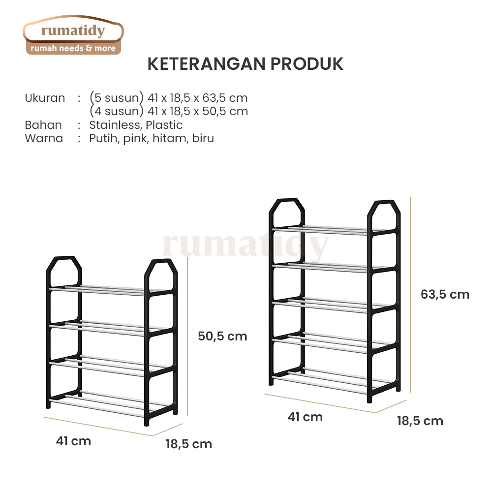 RUMATIDY - Rak Sepatu Sandal Susun Portable Stainless Steel 4 5 Tingkat Kuat Dan Awet Berkualitas