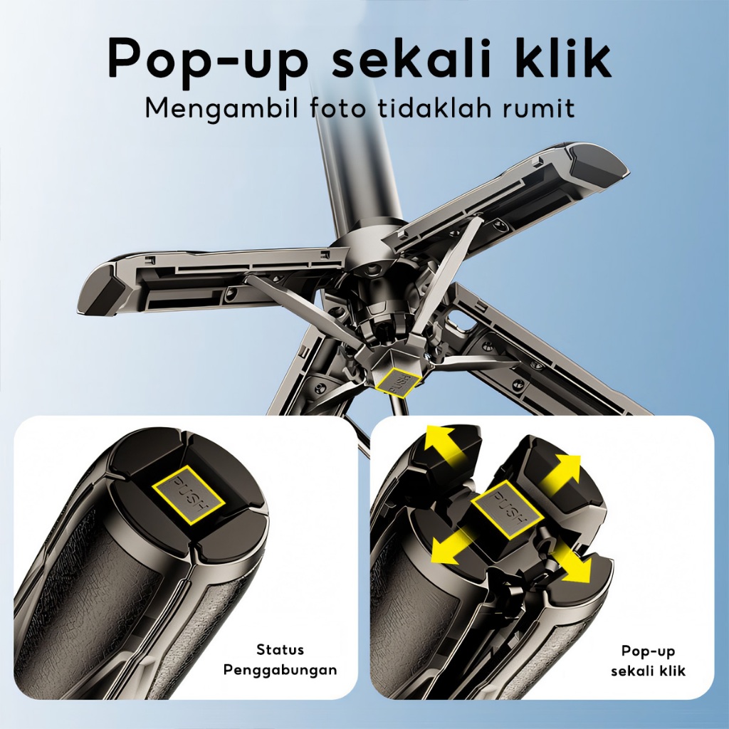 Jovitech Tr15 3 In 1 Extendable Grip Tripod Mini Selfie Stick Remote Control Tripod Tongsis Tripod Bluetooth Dan Lampu