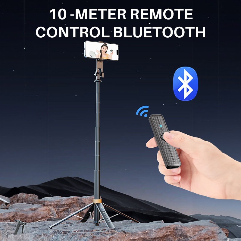 Jovitech Tripod 4 Kaki Stabil Tongsis Selfie Stick Bluetooth Satu Fungsi Klik 178Cm - Tr17