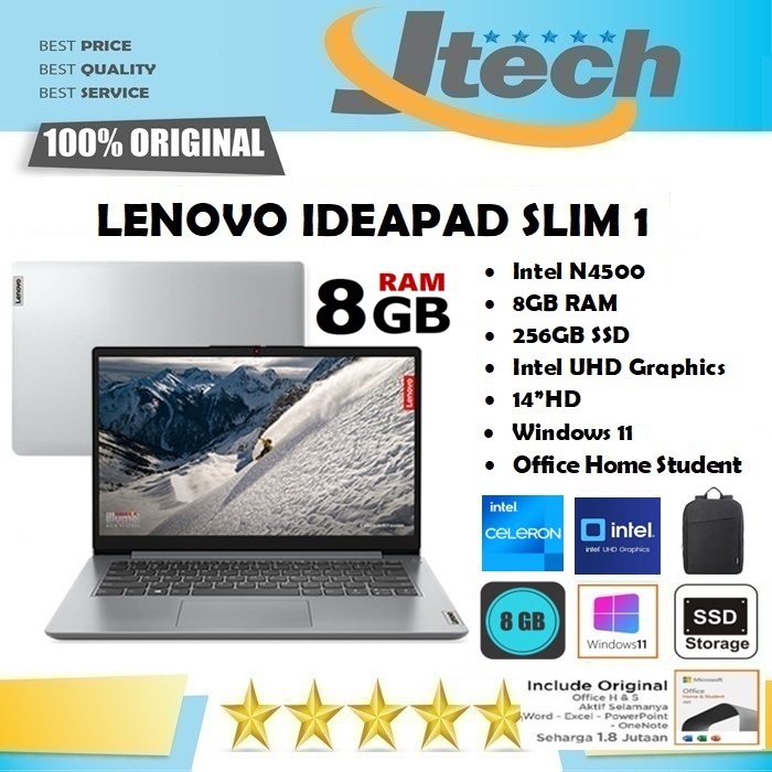 Lenovo Ideapad Slim 1 N4500 8GB 256GB SSD 14"HD Win11 OHS