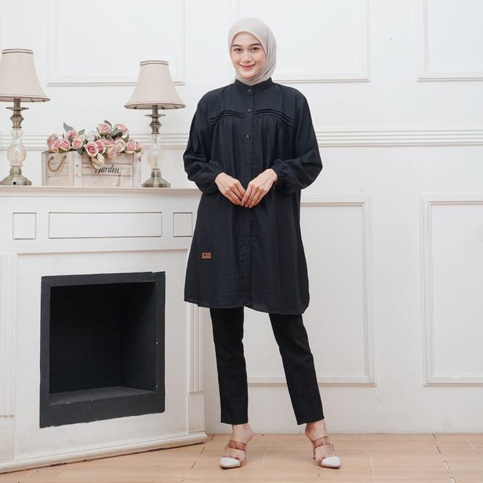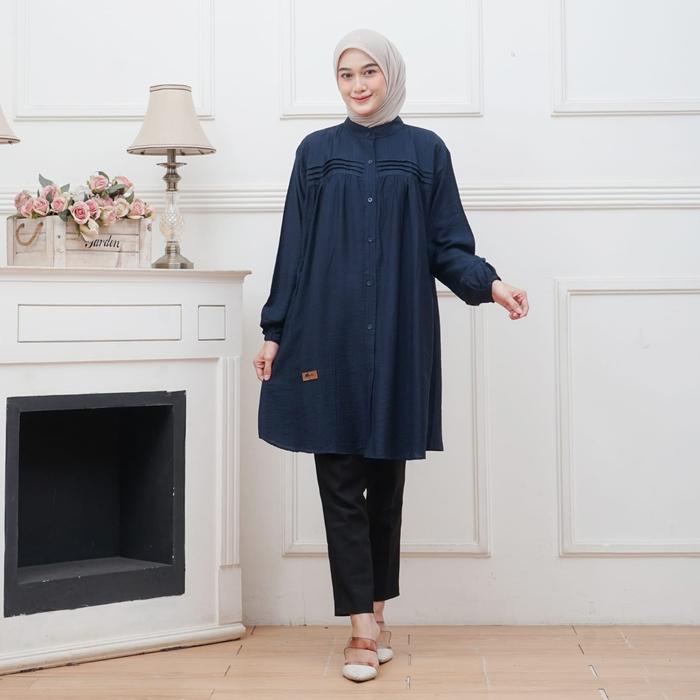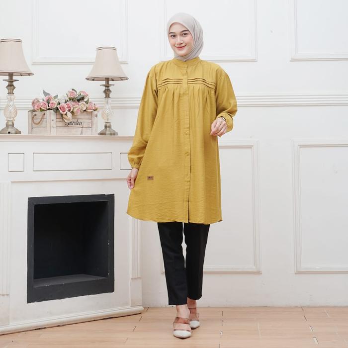 Jumbo Naura Long Tunik Polo Linen Premium Fashion Muslim Wanita Atasan Formal Keren Kancing Nyaman Basic Panjang Kat