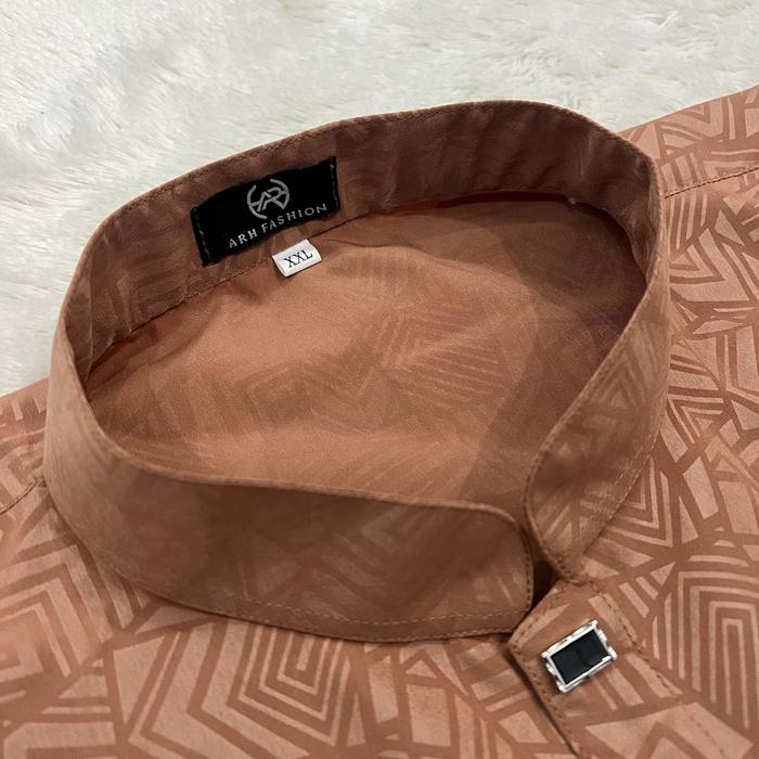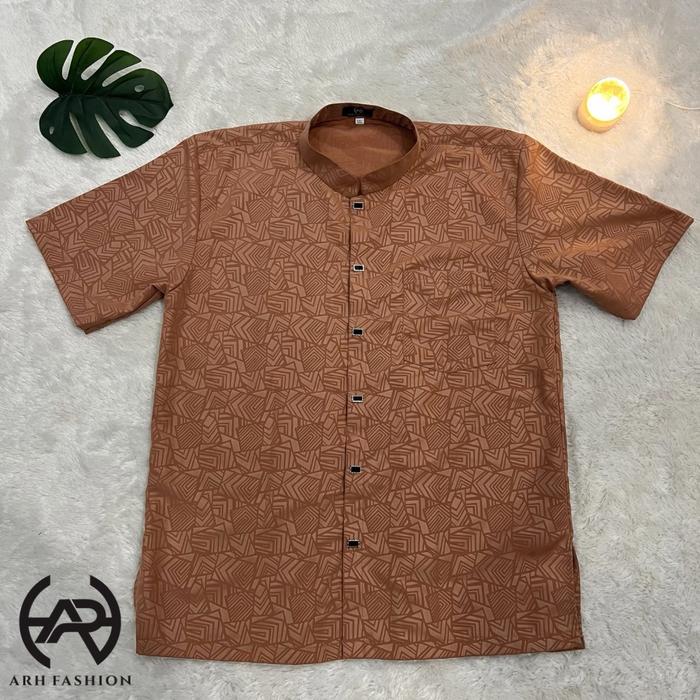 Kemeja Koko Embos Pria Lengan Pendek Arh Fashion Motif Etnic - Muslim Promo - Hitam, M