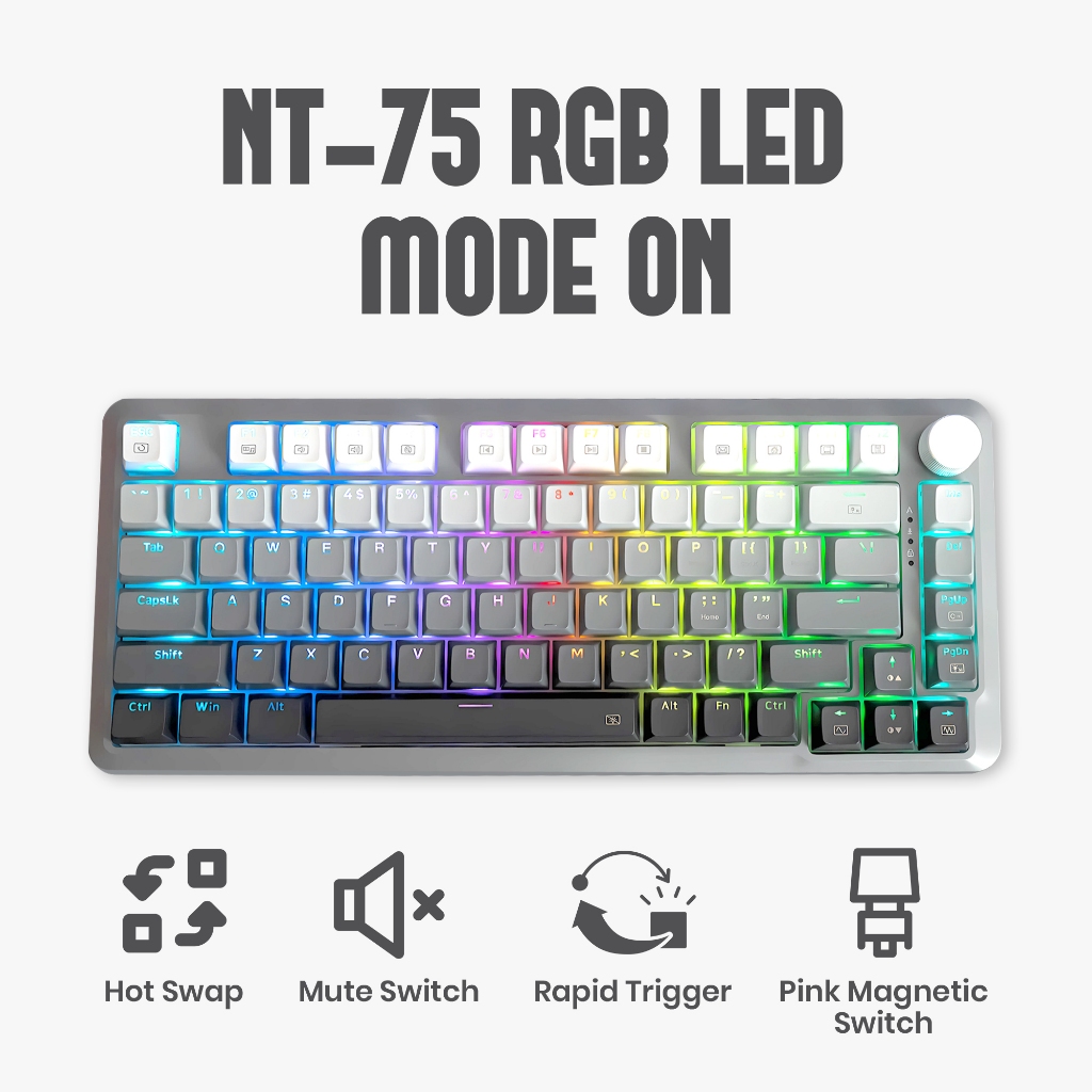 Keyboard Novatu Nt-75 Gaming Mechanical Rapid Trigger 75 PERSEN Hall Effect Magnetic Switch - Rgb Led