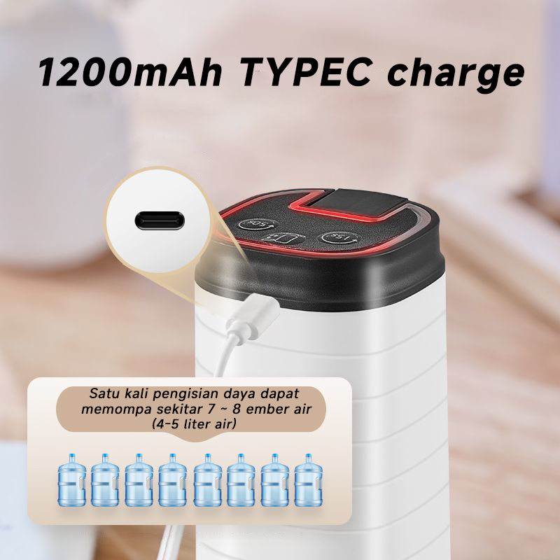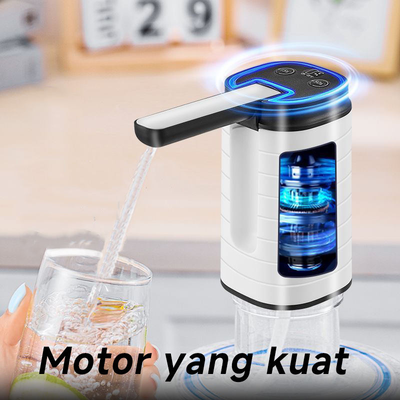 Pompa Galon Electrik Portabel / 3Mode Kuantitatif Water Dispenser Auto Desain Lipat Cerdas, Dilengk4ppi Lampu LED Biru - USB Type-C - 1200mAh