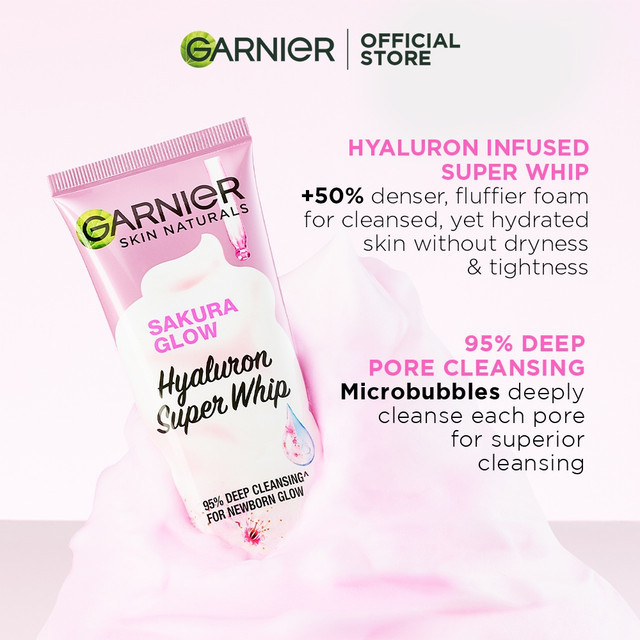 [PAKET HEMAT ISI 2] GARNIER Facial Wash Sakura Glow Ceramide Hyaluron Super Whip Foam Face Wash 100ml | Skincare Pembers